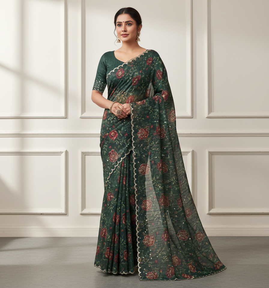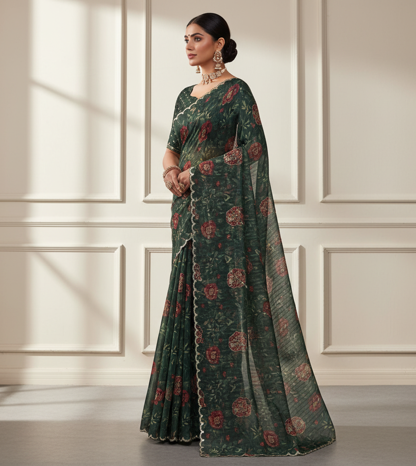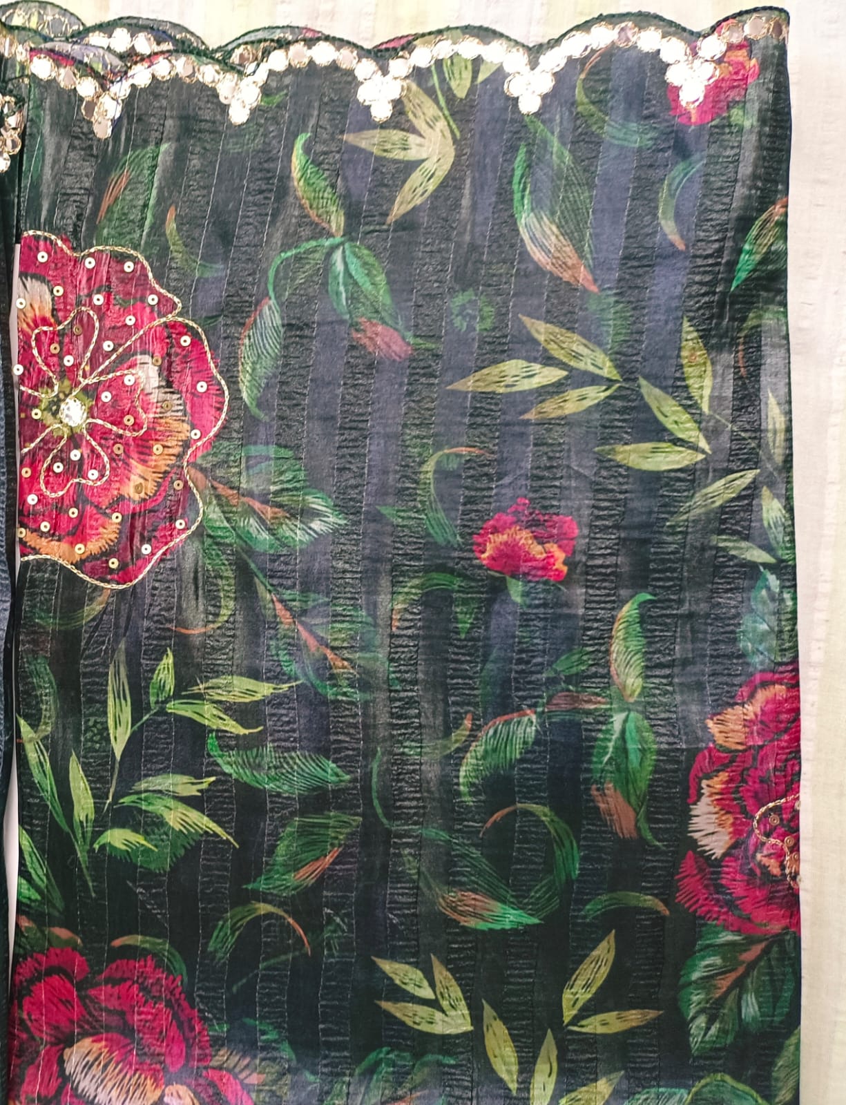 Saree fabric : Kashi organza pattan aari sequence mirror work border Saree